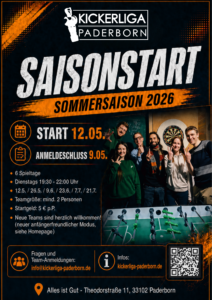 Hier findest du alle wichtigen Termine der Kickerliga Paderborn einmal übersichtlich aufgelistet.
